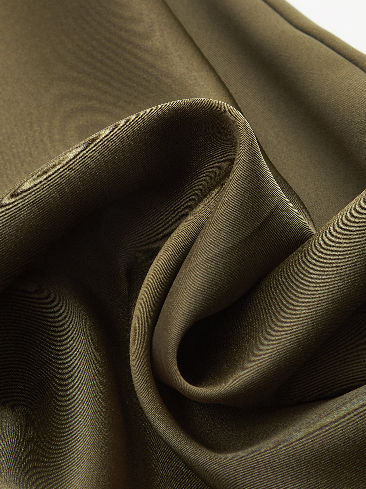 Drapeli v yakalı bol paça pantolon takım, şık kesimi ve kaliteli saten kumaşı ile stilinizi zarifçe tamamlar. Haki renkteki bu takım, beldeki metal detay ile dikkat çekici bir görünüm sunar. Geniş paça pantolonu sayesinde konforlu kullanım sağlar ve hareket özgürlüğü yaratır. Hem iş hem de özel davetlerde rahatça tercih edilebilir. Modern tasarımı ile gardırobunuzun vazgeçilmezi olacak bu pantolon takımını şimdi sipariş verin!