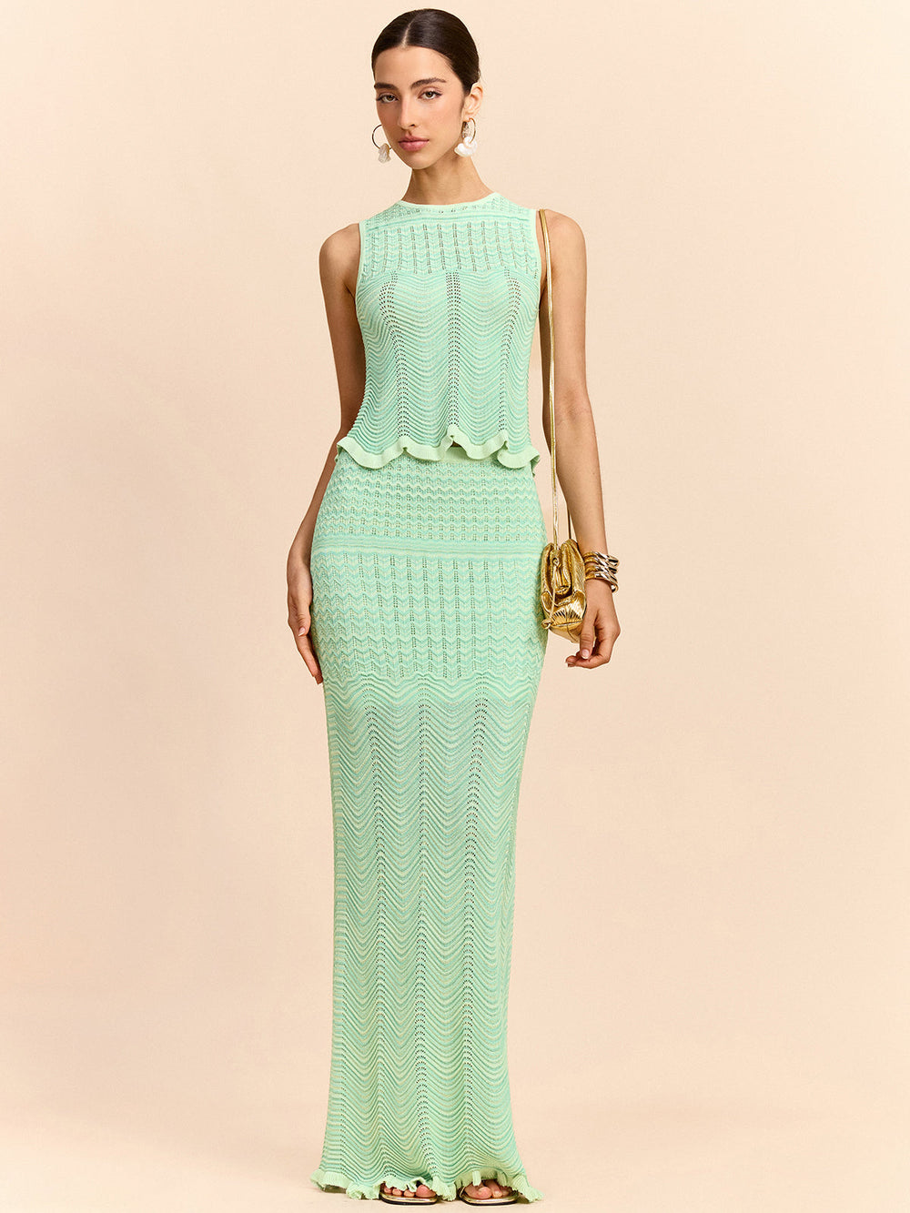 Ajurlu Triko Kolsuz Örme Bluz – Mint