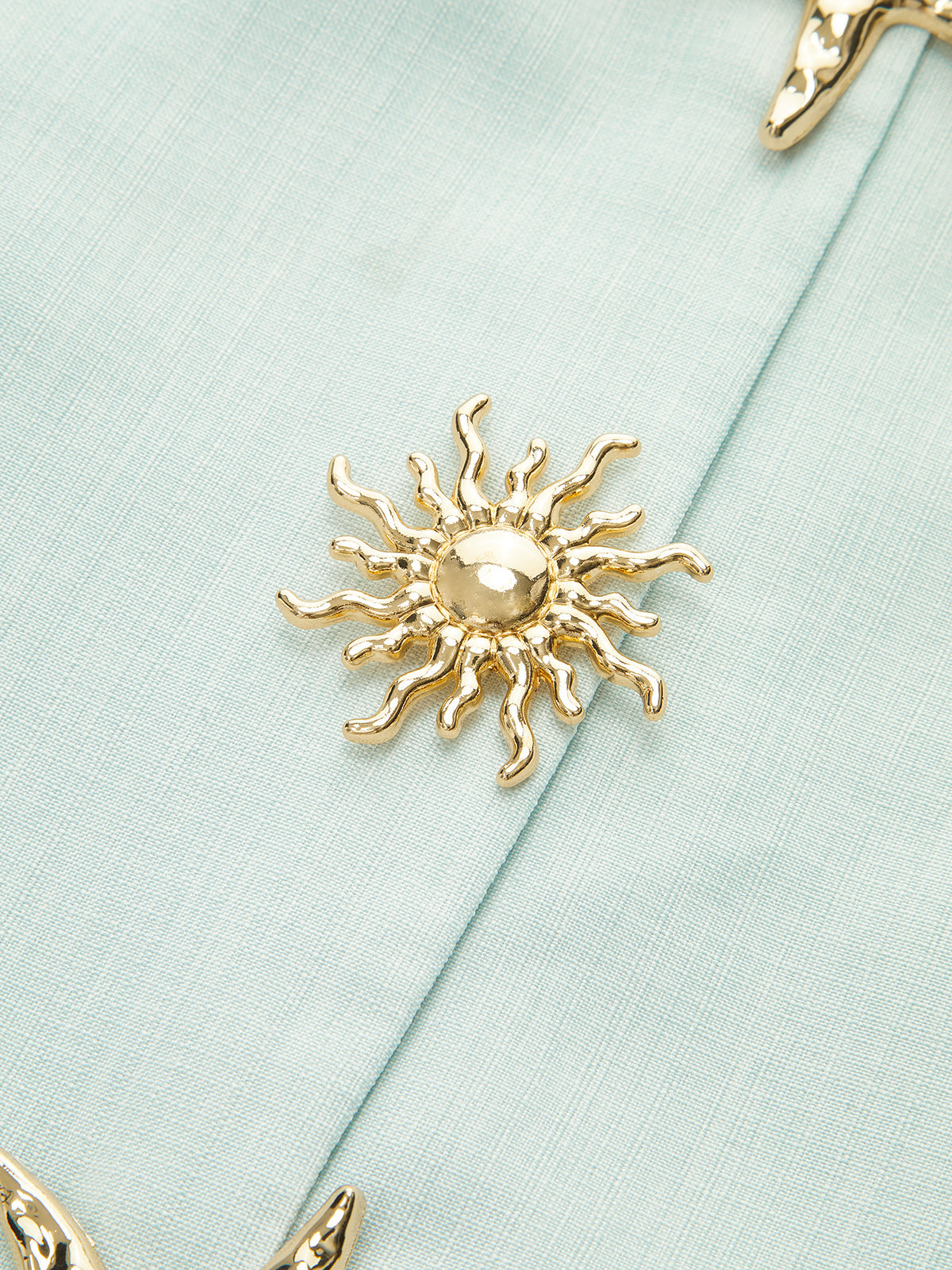 Kolsuz çiçek desenli etek ucu fırfırlı mini elbise, rahat kesimi ve şık detaylarıyla öne çıkar. %100 pamuklu dokuma kumaştan üretilen bu elbise, nefes alabilir yapısı sayesinde gün boyu konfor sunar. Göğüs kısmında yer alan küçük yırtmaç ve deniz yıldızı, güneş ve çiçek broş detaylarıyla stilinize yaratıcı bir dokunuş katıyor. Etek ucu fırfır detayları feminenliği vurgularken, beli hafif oturan formu sayesinde zarif bir siluet oluşturur. Yaz davetlerinden günlük şıklığa rahatlıkla uyarlanabilen bu model, kombinlerinizi tamamlayacak kusursuz bir tercih. Şimdi sipariş verin!